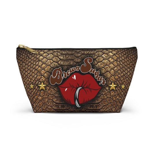 Brown Snakeskin Design Accessory Pouch w T-bottom